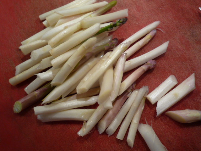 Man kann weissen oder grünen Spargel oder beides nehmen, nur vorher garen.